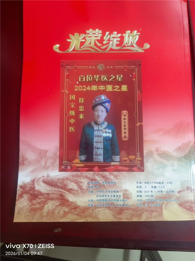符忠来老师始终秉承着以德为本,不以盈利为目的,愿把三十年所学不遗余力的奉献社会,为弘扬中医传统文化尽点绵薄之力,符忠来老师认为能为需要的人解除痛苦,是他最大的心愿。健康是国富民强的主要标志。基层医生是构筑“全民健康”的基础力量,是基层百姓的健康“守门人”。他们既有精通中医并发扬突破的高人,也有凭借秘方福泽一方的名医,以翔实可循的案例让人信服,书写着一个又一个人间奇迹。符忠来老师由一名平凡的医者,成为如今中医药学的中坚力量,他“医德高尚、医术高超、勇于探索,在医学科学研究的道路上不懈追求;用责任与担当不断创新研发新技术成果,用行动为人民生命健康保驾护航。