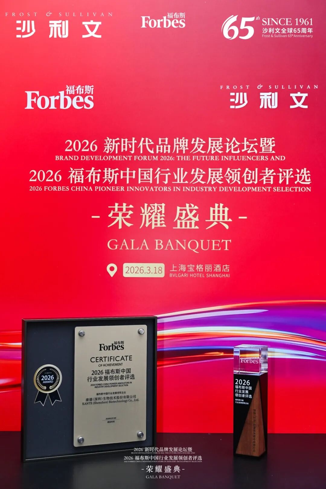 2026年3月18日,康德生物在福布斯中国与弗若斯特沙利文联合评选中,荣获「2026福布斯中国行业发展领军企业」,彰显其在生物医药领域的硬核技术创新、行业引领力、标准制定能力与高质量发展的卓越表现。