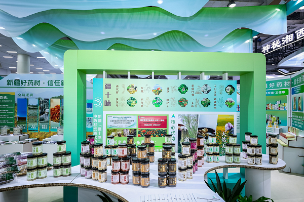 新奇康药业以“一脉九区一洽谈”为设计思路,融入天山、绿洲、民族纹样等新疆特色元素,打造集品牌展示、资源呈现、产品体验、商务对接、文化传播于一体的沉浸式产业会客厅。展位系统展示了新疆中药材产业优势、“疆十味”道地药材标本、五大GAP标准化种植基地(裕民红花、于田管花肉苁蓉、博湖雪白睡莲、伊犁昭苏黄芪、巴州和静软紫草)、五大产地仓体系、“一带一路”中药材科技产业园等核心成果,完整呈现从种源、种植、加工、仓储、研发到生产、销售、数字化服务的全产业链闭环,充分彰显了链主企业的引领实力。